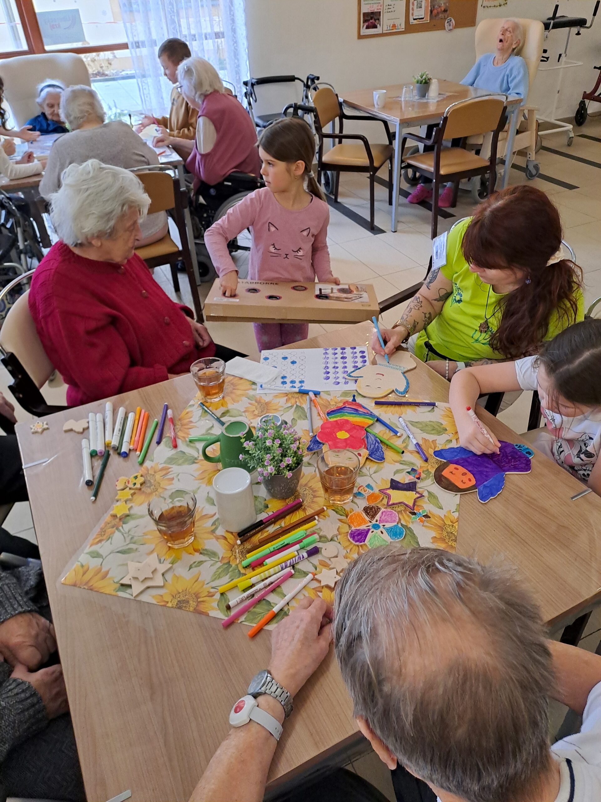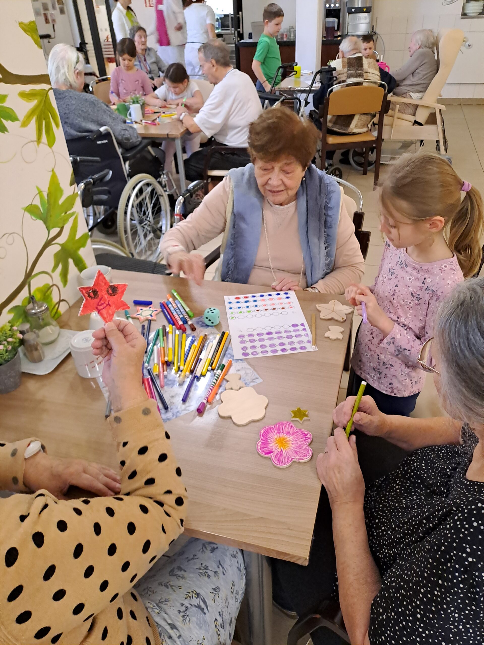 Naše škola se během podzimních měsíců zapojila do mezigeneračního projektu Povídej, který probíhá pod záštitou neziskové organizace Mezi námi, o. p. s. Spolupráci jsme navázali s domovem Alzheimer Home Sychrov. První společné setkání se uskutečnilo v listopadu. Děti si pro klienty připravily taneční vystoupení, společně si zacvičily a následně se zapojily do tvořivé aktivity, při které vznikly symbolické spojené dlaně přátelství. Tento týden proběhlo další, lednové setkání, během něhož si děti se seniory zahrály společenské hry a opět jim zatančily. Setkání se neslo v příjemné a přátelské atmosféře plné radosti a vzájemného sdílení. Tato setkání jsou pro děti velmi přínosná – učí se úctě, empatii, trpělivosti, spolupráci a komunikaci s jinou věkovou skupinou. Seniorům naopak přinášejí radost, úsměv a dobrý pocit z možnosti sdílet své zkušenosti a být součástí společného programu. Na další setkání se už nyní velmi těšíme. Tradičně se také v předvánočním období vydáváme s dětmi do domova seniorů ve Vlastibořicích, kde zpíváme vánoční koledy a předáváme klientům malé dárečky, které jim zpříjemní adventní čas.